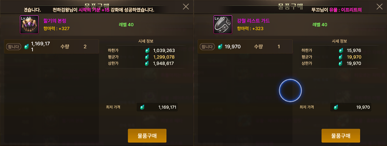 이 만 테라지만 경매장에 올라오는 순간 1초 내로 팔립니다.