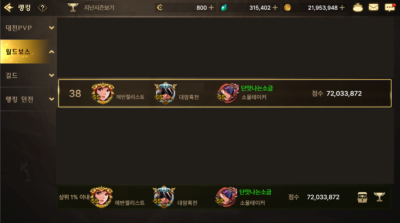 월드보스에서 가장 중요한 것은 모든 캐릭이
