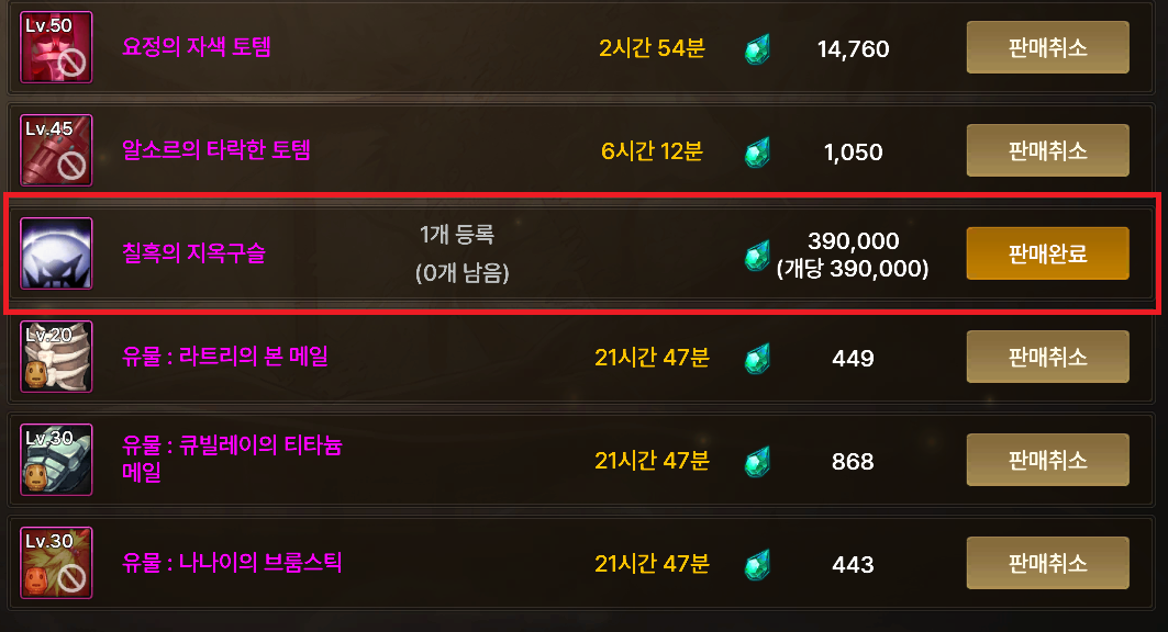 칠흑의 지옥구슬(지옥파티 초대장 1000장 / 30,000,000골드)