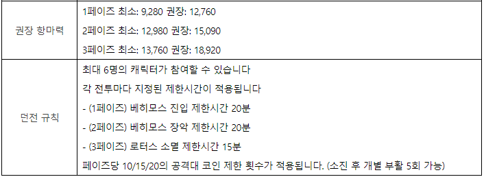 게임사에서 고지한 권장 항마력은 위와 같으나