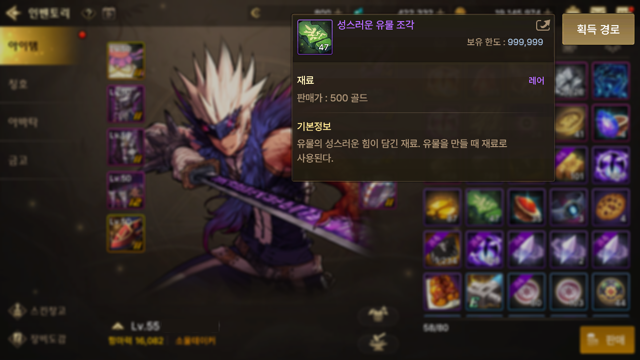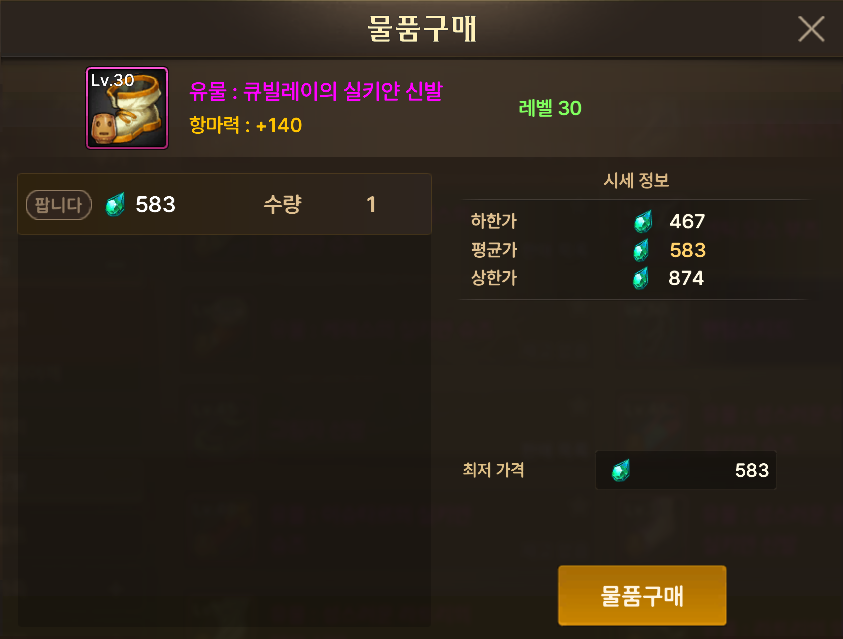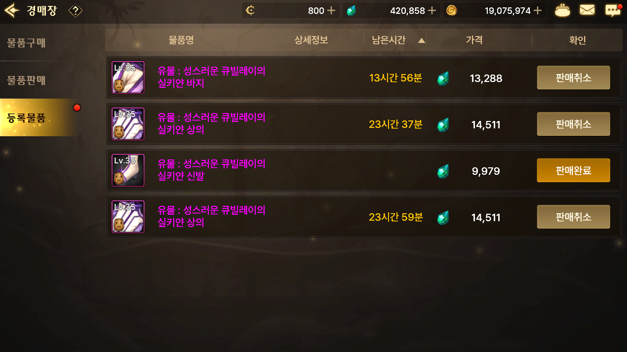 오직 천 유물만 레벨별로 시세가 큰 폭으로