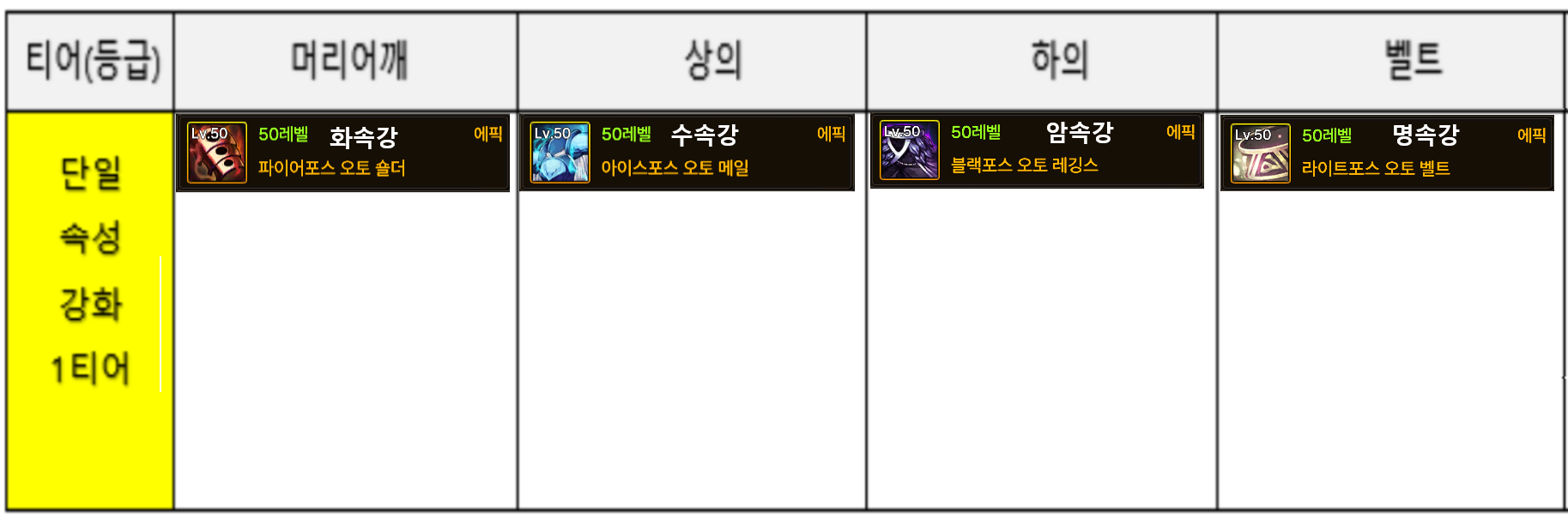 안녕하세요 오늘은 에픽 장비 티어표를 정리해보려고 합니다.