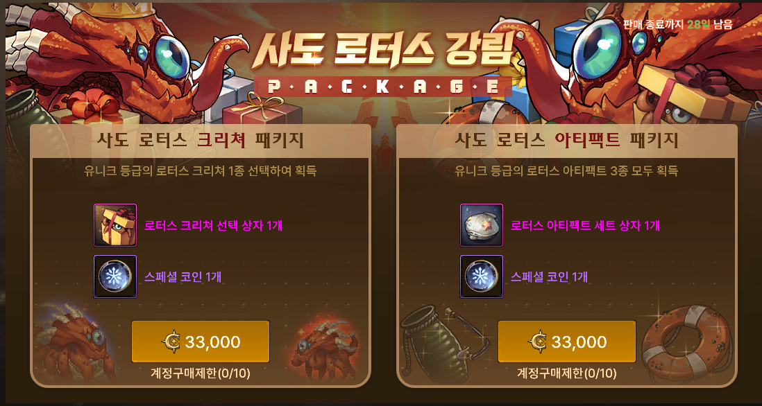 로터스 크리쳐 구매(33,000원), 자체 아티펙트 구매(33,000원) 총 66,000원 과금이 필요합니다.
