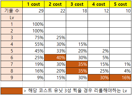 [롤토체스] 코스트당 기물 수 & 레벨당 유닛확률
