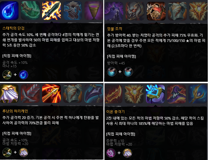 많은 분들이 이 직접 피해 아이템을 헷갈려하시길래 정리해봤습니다.
