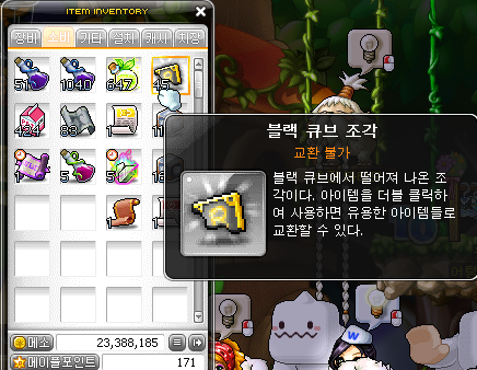3) 블랙큐브 사용 후 '소비' 인벤토리에 받은 큐브 조각 사용