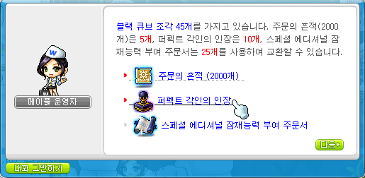4) 블랙 큐브 조각 10개로 '퍼팩트 각인의 인장' 교환