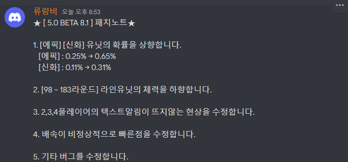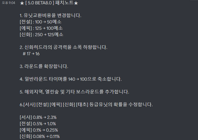 8.0v에서 라운드가 대폭 늘어났습니다. 히드라가 너프되었구요.