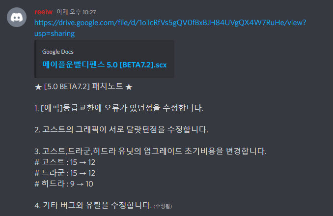 직접 다운받고 패치내역을 확인할 수 있는 디코주소를 알려드리겠습니다.