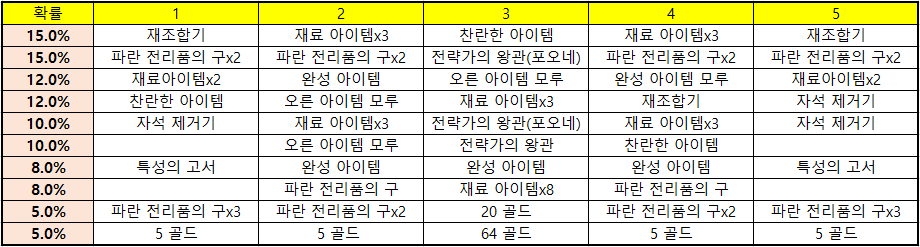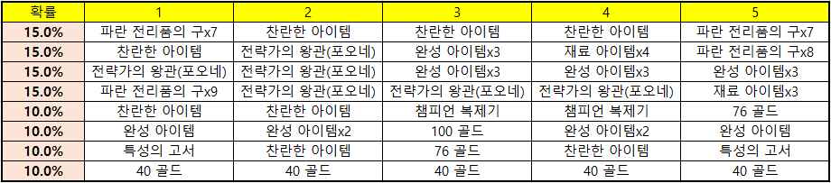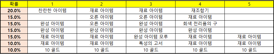 이상으로 지하세계 각 단계별 약탈 보상이었습니다.