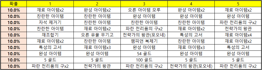 [롤토체스] 시즌8 지하세계 단계별 보상 확률