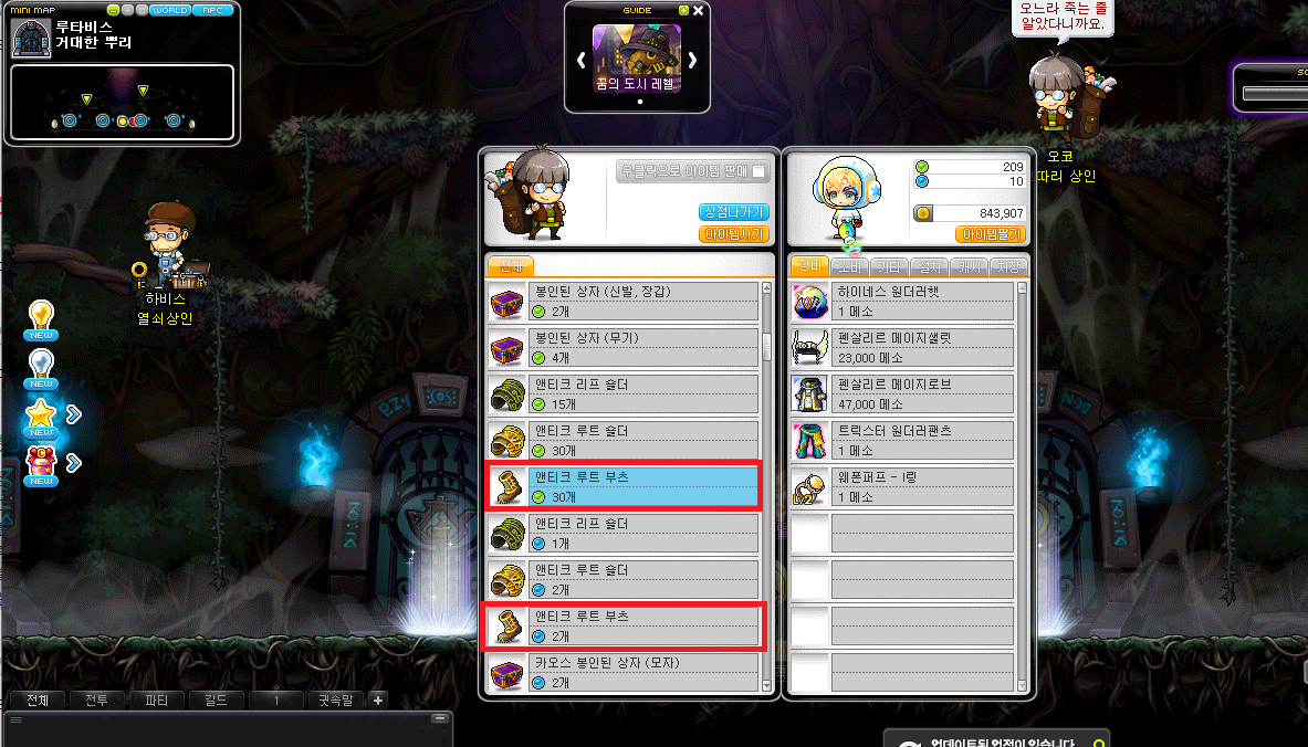 [메이플] 앱솔랩스 신발, 장갑 토드 경로
