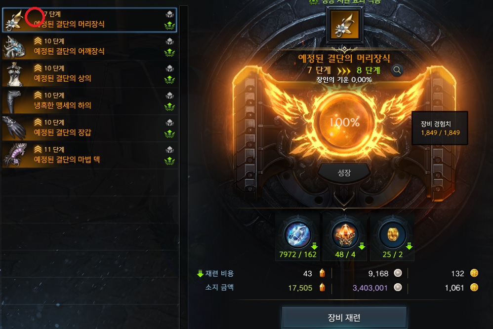 이번 패치로 인해 1415 아래의 장비템들의 재련 성장에 소모되는 명예의 파편이 줄었습니다.