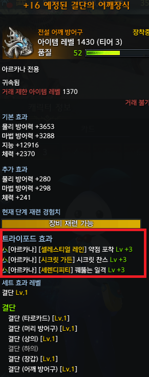 원하는 트라이포드 효과와 레벨의 장비를 획득하시면