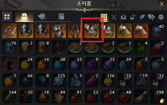 이렇게 보관함에 저장시킨 후 재료로 쓰일뻔 했던 장비를