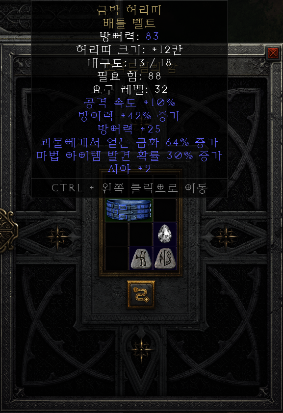 디아2 매찬벨트 '골드랩(금박 허리띠)' 업그레이드 방법