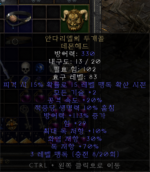 디아2 용병 최종 투구 '안뚜, 안다리엘의 두개골' 수급처 및 옵션(feat. 시세)