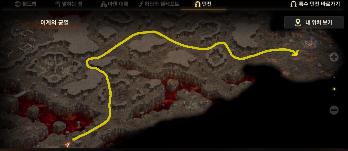 경로 : 지도 - 아덴데륙 - 황혼산맥 100,000아덴 텔 -> 이계의 균열 입구 -> 이계의 균열 9시