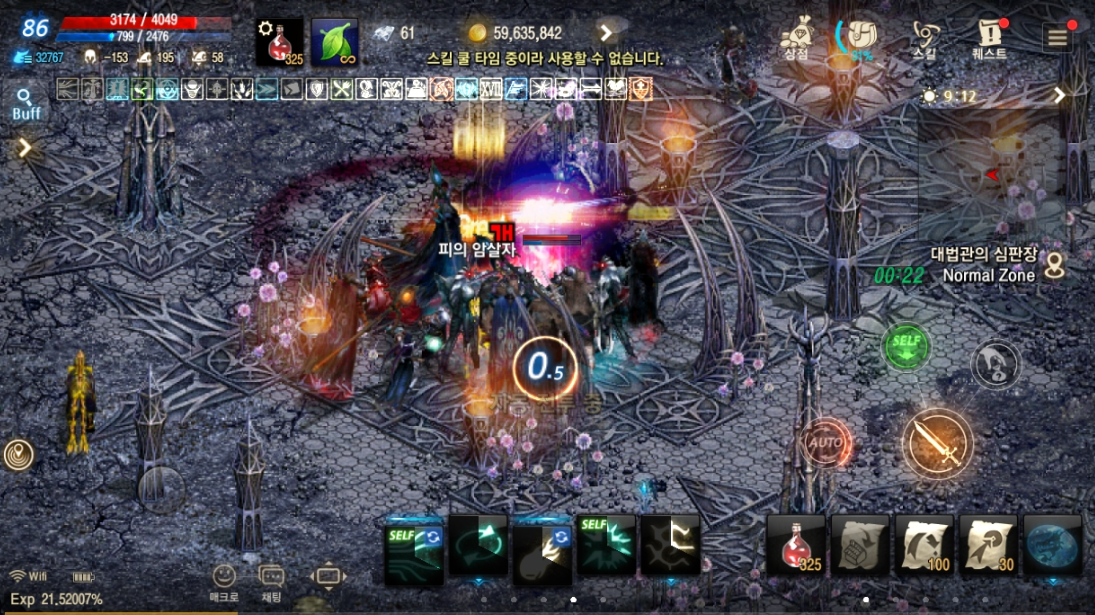 위 사진처럼 바위 우측에 두고 광역 사냥을 하시면 던전 시간종료까지 그 자리에서 사냥 가능합니다.